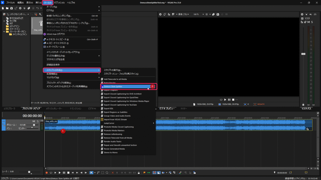【無料】AI音源分離スクリプト「Demucs Stem Splitter for Vegas Pro」