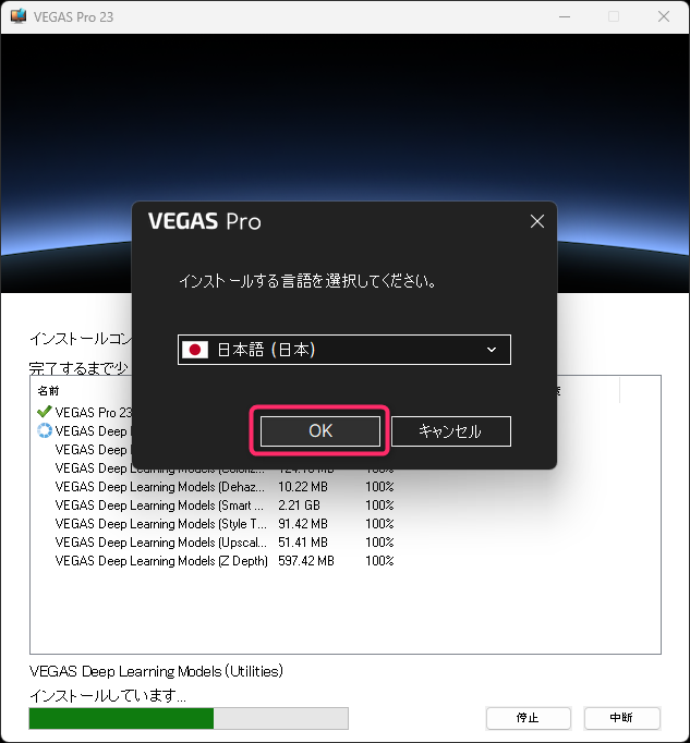 全てのDeep Learning Modelsのインストールが完了した時点で、VEGAS Proのインストールは完了となります。