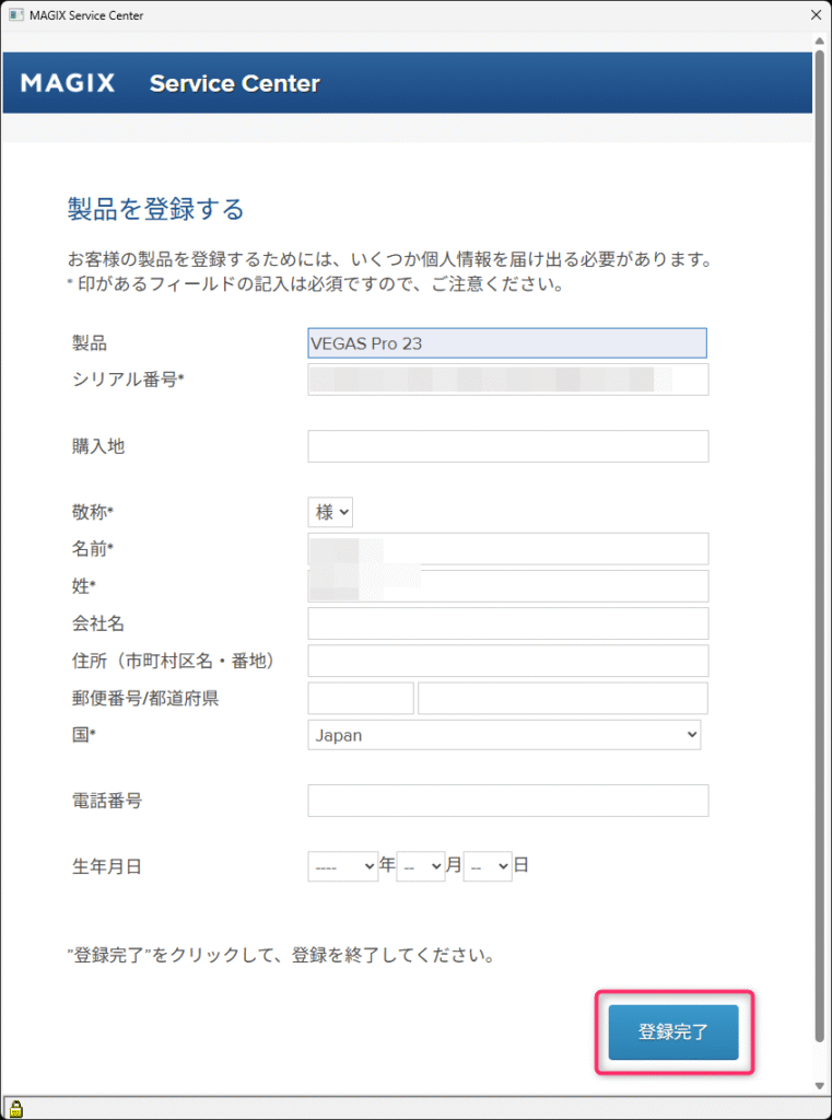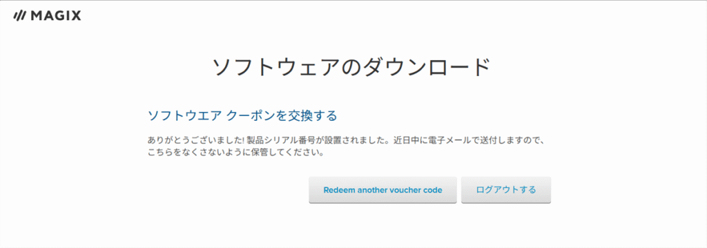 ※シリアル番号はMAGIXから届いたメール内に記載されているG5からはじまる22桁の英数字です。
