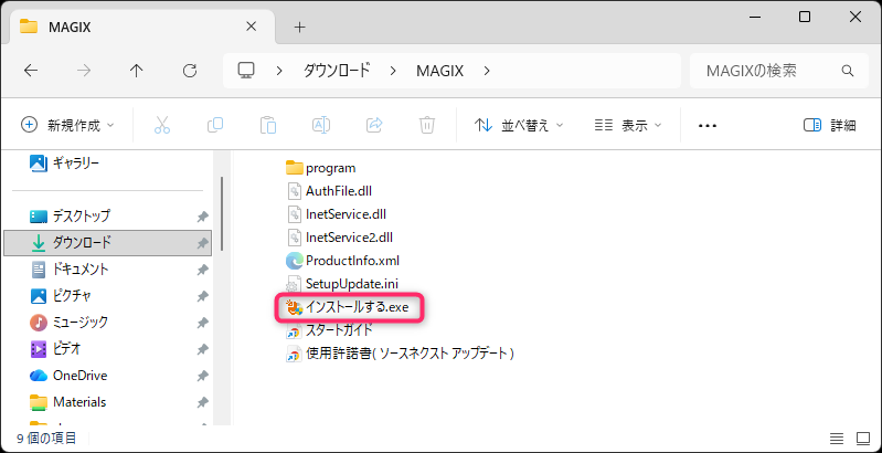 自分のPCに保存したインストールファイル「MAGIX.exe」をダブルクリックしてインストーラを起動します。